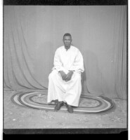 425. EAP449/2/30/425 Reference (shelfmark): EAP449/2/30/425 Title: A man wearing a boubou sitting face-forward in the studio. Collection Area: Endangered Archives Programme Languages: Not applicable Date Range: 2nd half od the 20th century Extent: 1 TIFF image