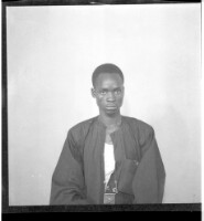 424. EAP449/2/30/424 Reference (shelfmark): EAP449/2/30/424 Title: A man wearing a boubou sitting face-forward in the studio. Collection Area: Endangered Archives Programme Languages: Not applicable Date Range: 2nd half od the 20th century Extent: 1 TIFF image