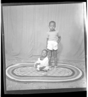 531. EAP449/2/30/531 Reference (shelfmark): EAP449/2/30/531 Title: Two little boys, one wearing a t-shirt and shorts standing face-forward and the other wearing a boubou sitting face-forward in the studio. Collection Area: Endangered Archives Programme Languages: Not applicable Date Range: 2nd half od the 20th century Extent: 1 TIFF image
