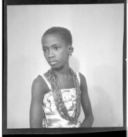 538. EAP449/2/30/538 Reference (shelfmark): EAP449/2/30/538 Title: A girl wearing a dress and necklaces sitting in profile in the studio. Collection Area: Endangered Archives Programme Languages: Not applicable Date Range: 2nd half od the 20th century Extent: 1 TIFF image