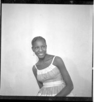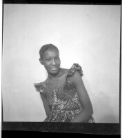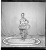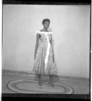 99. EAP449/2/31/99 Reference (shelfmark): EAP449/2/31/99 Title: A girl wearing a dress, pagne, and necklace standing face-forward in the studio. Collection Area: Endangered Archives Programme Languages: Not applicable Date Range: 2nd half od the 20th century Extent: 1 TIFF image