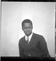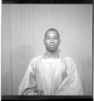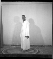 100. EAP449/2/31/100 Reference (shelfmark): EAP449/2/31/100 Title: A man wearing a boubou standing in profile in the studio. Collection Area: Endangered Archives Programme Languages: Not applicable Date Range: 2nd half od the 20th century Extent: 1 TIFF image