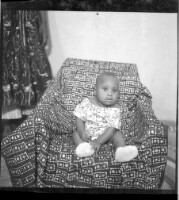 104. EAP449/2/31/104 Reference (shelfmark): EAP449/2/31/104 Title: A baby wearing a shirt sitting in profile on a chair in the studio. Collection Area: Endangered Archives Programme Languages: Not applicable Date Range: 2nd half od the 20th century Extent: 1 TIFF image