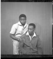 121. EAP449/2/31/121 Reference (shelfmark): EAP449/2/31/121 Title: Two men wearing shirts, one sitting in profile in front of the other standing face-forward in the studio. Collection Area: Endangered Archives Programme Languages: Not applicable Date Range: 2nd half od the 20th century Extent: 1 TIFF image
