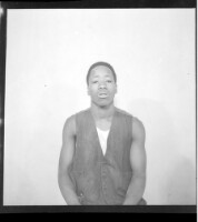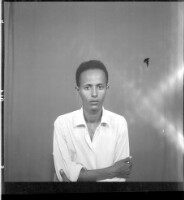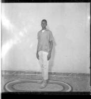 122. EAP449/2/31/122 Reference (shelfmark): EAP449/2/31/122 Title: A man wearing a shirt and pants standing face-forward in the studio. Collection Area: Endangered Archives Programme Languages: Not applicable Date Range: 2nd half od the 20th century Extent: 1 TIFF image
