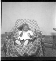 124. EAP449/2/31/124 Reference (shelfmark): EAP449/2/31/124 Title: A baby wearing a shirt sitting in profile on a chair in the studio. Collection Area: Endangered Archives Programme Languages: Not applicable Date Range: 2nd half od the 20th century Extent: 1 TIFF image