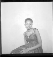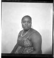 130. EAP449/2/31/130 Reference (shelfmark): EAP449/2/31/130 Title: A woman wearing a dress, head wrap, and necklace sitting face-forward in the studio. Collection Area: Endangered Archives Programme Languages: Not applicable Date Range: 2nd half od the 20th century Extent: 1 TIFF image