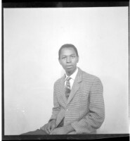 137. EAP449/2/31/137 Reference (shelfmark): EAP449/2/31/137 Title: A man wearing a jacket, tie, and pants sitting face-forward in the studio. Collection Area: Endangered Archives Programme Languages: Not applicable Date Range: 2nd half od the 20th century Extent: 1 TIFF image