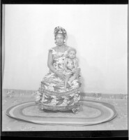 141. EAP449/2/31/141 Reference (shelfmark): EAP449/2/31/141 Title: A woman wearing a dress and necklace sitting face-forward holding a child on her lap in the studio. Collection Area: Endangered Archives Programme Languages: Not applicable Date Range: 2nd half od the 20th century Extent: 1 TIFF image