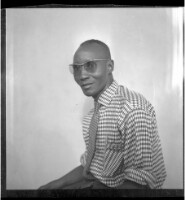 144. EAP449/2/31/144 Reference (shelfmark): EAP449/2/31/144 Title: A man wearing a shirt and glasses sitting in profile in the studio. Collection Area: Endangered Archives Programme Languages: Not applicable Date Range: 2nd half od the 20th century Extent: 1 TIFF image