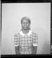 146. EAP449/2/31/146 Reference (shelfmark): EAP449/2/31/146 Title: An old woman wearing a dress, head wrap, and necklace sitting face-forward in the studio. Collection Area: Endangered Archives Programme Languages: Not applicable Date Range: 2nd half od the 20th century Extent: 1 TIFF image