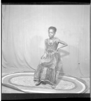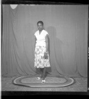 227. EAP449/2/31/227 Reference (shelfmark): EAP449/2/31/227 Title: A girl wearing a dress and skirt standing in profile in the studio. Collection Area: Endangered Archives Programme Languages: Not applicable Date Range: 2nd half od the 20th century Extent: 1 TIFF image