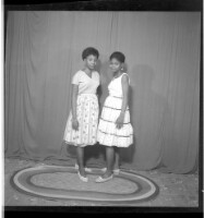 331. EAP449/2/31/331 Reference (shelfmark): EAP449/2/31/331 Title: Two girls wearing dresses and skirts standing in profile in the studio. Collection Area: Endangered Archives Programme Languages: Not applicable Date Range: 2nd half od the 20th century Extent: 1 TIFF image