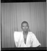 334. EAP449/2/31/334 Reference (shelfmark): EAP449/2/31/334 Title: A man wearing a boubou sitting face-forward in the studio. Collection Area: Endangered Archives Programme Languages: Not applicable Date Range: 2nd half od the 20th century Extent: 1 TIFF image