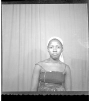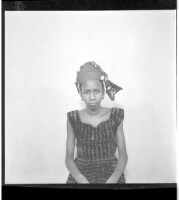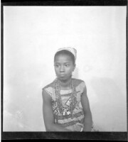 354. EAP449/2/31/354 Reference (shelfmark): EAP449/2/31/354 Title: A girl wearing a dress and head wrap sitting face-forward in the studio. Collection Area: Endangered Archives Programme Languages: Not applicable Date Range: 2nd half od the 20th century Extent: 1 TIFF image