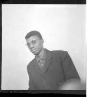 358. EAP449/2/31/358 Reference (shelfmark): EAP449/2/31/358 Title: A man wearing a jacket and glasses sitting in profile in the studio. Collection Area: Endangered Archives Programme Languages: Not applicable Date Range: 2nd half od the 20th century Extent: 1 TIFF image