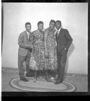 359. EAP449/2/31/359 Reference (shelfmark): EAP449/2/31/359 Title: Two girls wearing dresses between two men wearing a suit and tie, all standing in profile in the studio. Collection Area: Endangered Archives Programme Languages: Not applicable Date Range: 2nd half od the 20th century Extent: 1 TIFF image
