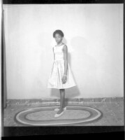 382. EAP449/2/31/382 Reference (shelfmark): EAP449/2/31/382 Title: A girl wearing a dress and necklace standing in profile in the studio. Collection Area: Endangered Archives Programme Languages: Not applicable Date Range: 2nd half od the 20th century Extent: 1 TIFF image