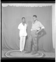 386. EAP449/2/31/386 Reference (shelfmark): EAP449/2/31/386 Title: Two men wearing shirts and pants standing in profile in the studio. Collection Area: Endangered Archives Programme Languages: Not applicable Date Range: 2nd half od the 20th century Extent: 1 TIFF image