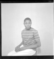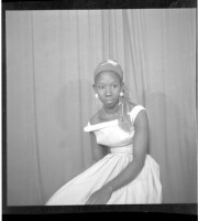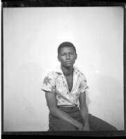 40. EAP449/2/31/40 Reference (shelfmark): EAP449/2/31/40 Title: A girl wearing a dress and head wrap sitting face-forward in the studio. Collection Area: Endangered Archives Programme Languages: Not applicable Date Range: 2nd half od the 20th century Extent: 1 TIFF image