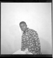 31. EAP449/2/31/31 Reference (shelfmark): EAP449/2/31/31 Title: A man wearing a t-shirt and pants sitting face-forward in the studio. Collection Area: Endangered Archives Programme Languages: Not applicable Date Range: 2nd half od the 20th century Extent: 1 TIFF image