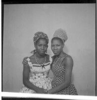 422. EAP449/2/31/422 Reference (shelfmark): EAP449/2/31/422 Title: Two girls wearing dresses, head wraps, and necklaces sitting, one face-forward and the other in profile in the studio. Collection Area: Endangered Archives Programme Languages: Not applicable Date Range: 2nd half od the 20th century Extent: 1 TIFF image
