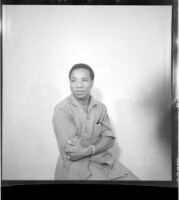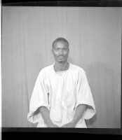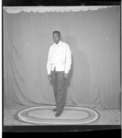 424. EAP449/2/31/424 Reference (shelfmark): EAP449/2/31/424 Title: A man wearing a shirt and pants standing in profile in the studio. Collection Area: Endangered Archives Programme Languages: Not applicable Date Range: 2nd half od the 20th century Extent: 1 TIFF image