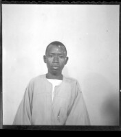 435. EAP449/2/31/435 Reference (shelfmark): EAP449/2/31/435 Title: A man wearing a boubou sitting face-forward in the studio. Collection Area: Endangered Archives Programme Languages: Not applicable Date Range: 2nd half od the 20th century Extent: 1 TIFF image