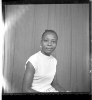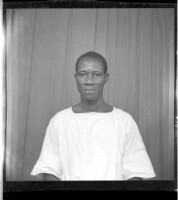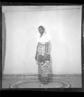 434. EAP449/2/31/434 Reference (shelfmark): EAP449/2/31/434 Title: A woman wearing a shirt, pagne, and head wrap standing in profile in the studio. Collection Area: Endangered Archives Programme Languages: Not applicable Date Range: 2nd half od the 20th century Extent: 1 TIFF image