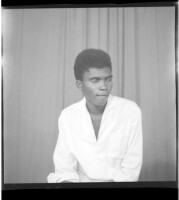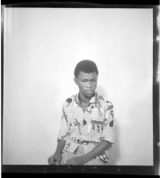 437. EAP449/2/31/437 Reference (shelfmark): EAP449/2/31/437 Title: A man wearing a shirt sitting face-forward in the studio. Collection Area: Endangered Archives Programme Languages: Not applicable Date Range: 2nd half od the 20th century Extent: 1 TIFF image