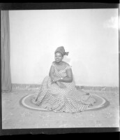 456. EAP449/2/31/456 Reference (shelfmark): EAP449/2/31/456 Title: A woman wearing a dress and head wrap sitting in profile in the studio. Collection Area: Endangered Archives Programme Languages: Not applicable Date Range: 2nd half od the 20th century Extent: 1 TIFF image