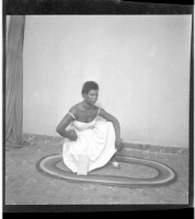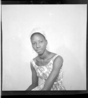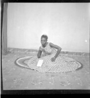 467. EAP449/2/31/467 Reference (shelfmark): EAP449/2/31/467 Title: A girl wearing a dress and head wrap sitting in profile in the studio. Collection Area: Endangered Archives Programme Languages: Not applicable Date Range: 2nd half od the 20th century Extent: 1 TIFF image