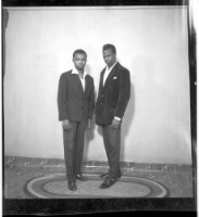 521. EAP449/2/31/521 Reference (shelfmark): EAP449/2/31/521 Title: Two men wearing jackets and pants standing, one face-forward and the other in profile in the studio. Collection Area: Endangered Archives Programme Languages: Not applicable Date Range: 2nd half od the 20th century Extent: 1 TIFF image