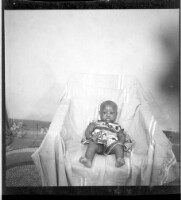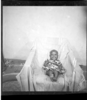 523. EAP449/2/31/523 Reference (shelfmark): EAP449/2/31/523 Title: A little girl wearing a dress laying down face-forward on a chair in the studio. Collection Area: Endangered Archives Programme Languages: Not applicable Date Range: 2nd half od the 20th century Extent: 1 TIFF image