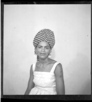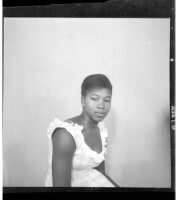 524. EAP449/2/31/524 Reference (shelfmark): EAP449/2/31/524 Title: A woman wearing a dress and head wrap sitting face-forward in the studio. Collection Area: Endangered Archives Programme Languages: Not applicable Date Range: 2nd half od the 20th century Extent: 1 TIFF image