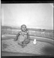 545. EAP449/2/31/545 Reference (shelfmark): EAP449/2/31/545 Title: A little girl wearing a dress and necklace sitting in profile and surrounded by toys in the studio. Collection Area: Endangered Archives Programme Languages: Not applicable Date Range: 2nd half od the 20th century Extent: 1 TIFF image
