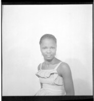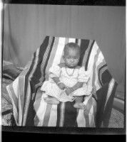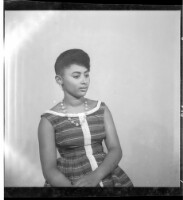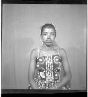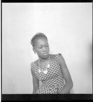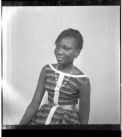 59. EAP449/2/31/59 Reference (shelfmark): EAP449/2/31/59 Title: A girl wearing a dress, head wrap, and necklace sitting face-forward in the studio. Collection Area: Endangered Archives Programme Languages: Not applicable Date Range: 2nd half od the 20th century Extent: 1 TIFF image