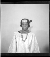 52. EAP449/2/31/52 Reference (shelfmark): EAP449/2/31/52 Title: A woman wearing a dress, head wrap, and necklace sitting face-forward in the studio. Collection Area: Endangered Archives Programme Languages: Not applicable Date Range: 2nd half od the 20th century Extent: 1 TIFF image