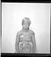 713. EAP449/2/31/713 Reference (shelfmark): EAP449/2/31/713 Title: A woman sitting wearing a camisole, headscarf, and earrings in the studio. Collection Area: Endangered Archives Programme Languages: Not applicable Date Range: 2nd half od the 20th century Extent: 1 TIFF image
