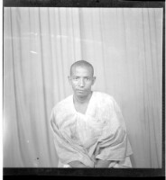 711. EAP449/2/31/711 Reference (shelfmark): EAP449/2/31/711 Title: A man sitting wearing a black boubou in the studio. Collection Area: Endangered Archives Programme Languages: Not applicable Date Range: 2nd half od the 20th century Extent: 1 TIFF image