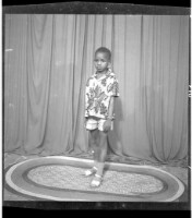 719. EAP449/2/31/719 Reference (shelfmark): EAP449/2/31/719 Title: A little boy standing on a rug wearing shorts and a shirt and bracelet and socks and shoes in the studio. Collection Area: Endangered Archives Programme Languages: Not applicable Date Range: 2nd half od the 20th century Extent: 1 TIFF image