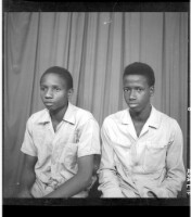 720. EAP449/2/31/720 Reference (shelfmark): EAP449/2/31/720 Title: Two young men sitting wearing white shirts, on the right short sleeves and on the left long sleeves in the studio. Collection Area: Endangered Archives Programme Languages: Not applicable Date Range: 2nd half od the 20th century Extent: 1 TIFF image