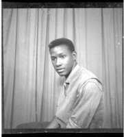 714. EAP449/2/31/714 Reference (shelfmark): EAP449/2/31/714 Title: A young man sitting wearing a white short sleeved shirt in the studio. Collection Area: Endangered Archives Programme Languages: Not applicable Date Range: 2nd half od the 20th century Extent: 1 TIFF image