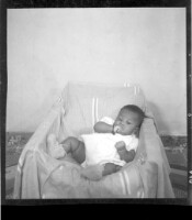 74. EAP449/2/31/74 Reference (shelfmark): EAP449/2/31/74 Title: A baby wearing undergarments sitting in profile on a chair in the studio. Collection Area: Endangered Archives Programme Languages: Not applicable Date Range: 2nd half od the 20th century Extent: 1 TIFF image