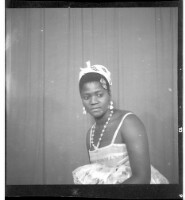 161. EAP449/2/32/161 Reference (shelfmark): EAP449/2/32/161 Title: A girl in a dress, headscarf, and necklace standing facing forward in the studio. Collection Area: Endangered Archives Programme Languages: Not applicable Date Range: 2nd half od the 20th century Extent: 1 TIFF image