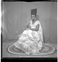 164. EAP449/2/32/164 Reference (shelfmark): EAP449/2/32/164 Title: A woman in a dress, headscarf, and necklace sitting in profile in the studio. Collection Area: Endangered Archives Programme Languages: Not applicable Date Range: 2nd half od the 20th century Extent: 1 TIFF image