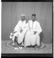 166. EAP449/2/32/166 Reference (shelfmark): EAP449/2/32/166 Title: Two men in boubous and hats sitting facing forward in the studio. Collection Area: Endangered Archives Programme Languages: Not applicable Date Range: 2nd half od the 20th century Extent: 1 TIFF image