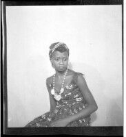 170. EAP449/2/32/170 Reference (shelfmark): EAP449/2/32/170 Title: A girl in a dress, headscarf, and necklace sitting in profile in the studio. Collection Area: Endangered Archives Programme Languages: Not applicable Date Range: 2nd half od the 20th century Extent: 1 TIFF image