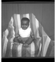 242. EAP449/2/32/242 Reference (shelfmark): EAP449/2/32/242 Title: A little girl in a t-shirt sitting facing forward in a chair in the studio. Collection Area: Endangered Archives Programme Languages: Not applicable Date Range: 2nd half od the 20th century Extent: 1 TIFF image
