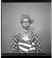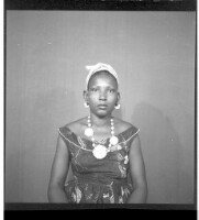 249. EAP449/2/32/249 Reference (shelfmark): EAP449/2/32/249 Title: A woman in a dress, headscarf, and necklace sitting facing forward in the studio. Collection Area: Endangered Archives Programme Languages: Not applicable Date Range: 2nd half od the 20th century Extent: 1 TIFF image